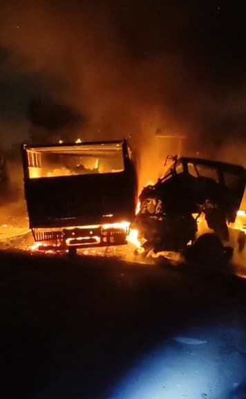 सोमवार को ट्रक-हाइवा में हुई टक्कर, जिंदा जल गया ड्राइवर
