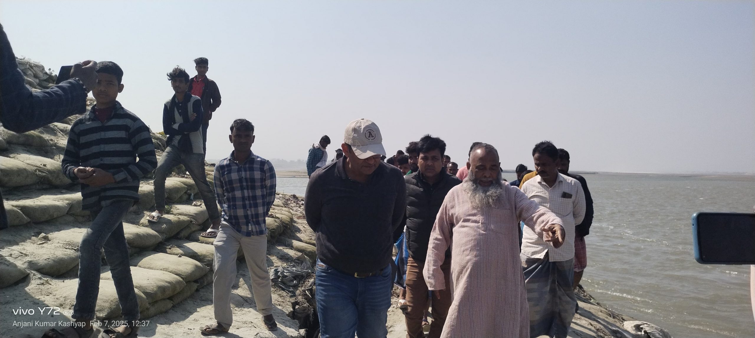 नवगछिया जहांगीरपुर वैसी पहुंचे जल संसाधन विभाग के अधीक्षण अभियंता(एसई) शैलेश कुमार, (इइ) गौतम कुमार, सहायक अभियंता विनीत कुमार. अधीक्षण अभियंता, कार्यपालक अभियंता ने कटाव निरोधी कार्य में हो रहे कटाव का जायजा लिया. प्रभात खबर ने जहांगीरपुर बैसी में हो रहे कटाव की खबर को प्रमुखता से प्रकाशित किया था. अखबार में छपी खबर को पढ़ते ही जल संसाधन विभाग के पदाधिकारी कटाव निरोधी कार्य का जायजा लेने पहुंचे. गांव के माे इश्तेखार ने बताया कि 21 दिसंबर जीओ बेग के स्लोप में दरार शुरू हो गयी थी. जल संसाधन विभाग के अभियंता को जानकारी दी गयी थी. जेई गांव पहुंच कर जायजा लिया, लेकिन इस दिशा में कोई कार्य नहीं हो रहा है. दरार बढ़ता ही जा रहा है. शीघ्र ही कटाव निरोधी कार्य आरंभ नहीं हुआ, तो कटाव निरोधी कार्य कोसी नदी में समा जायेगा. कटाव निरोधी कटने के पश्चात गांव भी नहीं बचेगा. पूर्व सरपंच माे गफ्फार ने बताया कि यदि शीघ्र ही एंटी रोजन कार्य नहीं किया गया, तो पूरे गांव के अस्तित्व पर खतरा हो जायेगा. वर्ष 2020 कोसी नदी के भीषण कटाव से 100 परिवाराें का घर कोसी नदी में विलीन हो गया था. पीड़ित परिवार को मुआवजा भी दिया गया था. कटाव रोकने के लिए जल संसाधन विभाग के कटाव निरोधी कार्य साढ़े तीन करोड़ रूपये की लागत से किया गया था. कराये गये कटाव निरोधी कार्य कोसी नदी में समा जायेगा. गांव के लोग कोसी नदी के कटाव के भय से रात्रि में सोते नहीं है. जल संसाधन विभाग के अधीक्षण अभियंता ने बताया कि कटाव तो नहीं हो रहा है. कटाव रोधी कार्य में धसान हो रहा है. गांव से बारिश का पानी, चापाकल का पानी कटाव निरोधी कार्य के उपर से बह रहा है. जनप्रतिनिधियों से कहा गया हैं कि कोई भी पानी कटाव निरोधी कार्य के अंदर या उपर से नहीं बहे.