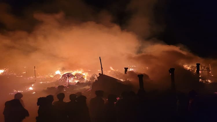 भागलपुर हवाई अड्डा के पास बसे सच्चिदानंद कॉलोनी में भीषण आग लग गयी. देखते ही देखते दर्जनों घरों को आग ने अपनी चपेट में ले लिया. आग लगने के बाद पूरे इलाके में अफरातफरी का माहौल बन गया. लोग किसी तरह अपनी जान बचाकर भागे. सूचना मिलते ही पुलिस व दमकल की टीम मौके पर पहुंची और आग बुझाने की जद्दोजहद में लग गयी.
