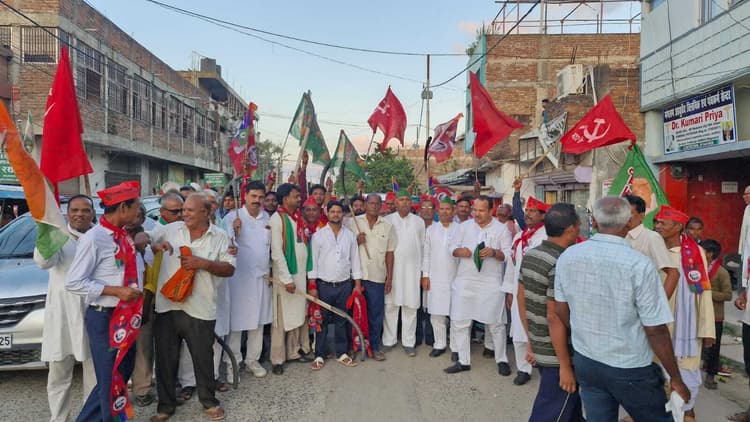 इंडिया गठबंधन के आह्वान पर नौ जुलाई को आयोजित कार्यक्रम चक्काजाम को लेकर इंडिया गठबंधन नवगछिया के नेताओं ने मशाल जुलूस निकाला. चक्काजाम को सफल बनाने के लिए संध्या छह बजे गौशाला से रेलवे स्टेशन नवगछिया चौक तक शांतिपूर्ण मशाल जुलूस निकाला. मतदाता पुनरीक्षण के खिलाफ जमकर नारेबाजी कर नुक्कड़ सभा की. नुक्कड सभा को संबोधित करते इंडिया गठबंधन के नेता शैलेश कुमार व गौतम कुमार प्रीतम ने कहा इंडिया महागठबंधन के आह्वान पर आयोजित चक्काजाम कार्यक्रम को शांतिपूर्ण सफल करना है. मेडिकल सेवा को छोड़ कर सभी दुकानदार, कोचिंग संस्थान सहित तमाम तरह के आवागमन बंद रख कर संविधान और लोकतंत्र व नागरिक अधिकार को बचाने में अपना सहयोग दें. राजद जिलाध्यक्ष अलख निरंजन पासवान व वीआईपी जिलाध्यक्ष सुधीर सिंह ने कहा कि नवगछिया पुलिस जिला के सभी प्रखंड अध्यक्ष सचिव, सभी प्रकोष्ठ के जिलाध्यक्ष व सचिव सहित इंडिया गठबंधन के सभी दल के नेता चक्काजाम में शामिल रहेंगे. मौके पर गौरीशंकर, संजय मंडल, मनोज मंडल, कपिलदेव मंडल, मो मोहिउद्दीन, हिमांशु यादव, प्रिंस कुमार मंडल, दिनेश शर्मा, मधुसूदन मौजूद थे.