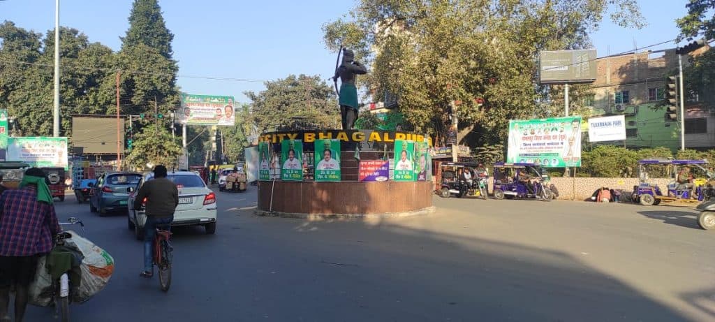 तिलकामांझी चौक पर टंगे होर्डिंग