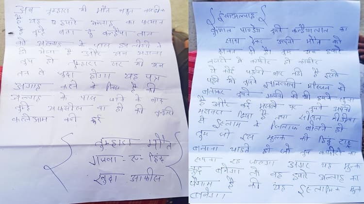 धमकी भरे पत्र में कुणाल पांडेय को लिखा गया है कि कन्हैया लाल का साथ देकर अपनी मौत को दावत दे दी. खत में ज्ञानव्यापी मस्जिद मामले का भी जिक्र किया गया है. हिंदुस्तान को इस्लामिक मुल्क बनाने और कुणाल पांडेय को काफिर बताकर धमकी दी गयी है. पत्र में दावा किया गया है कि कन्हैया लाल को भी खत भेजने वाले ने ही मारा है और अब अगला नंबर उसका है. पत्र भेजने की वजह आगाह करने को बताया गया.