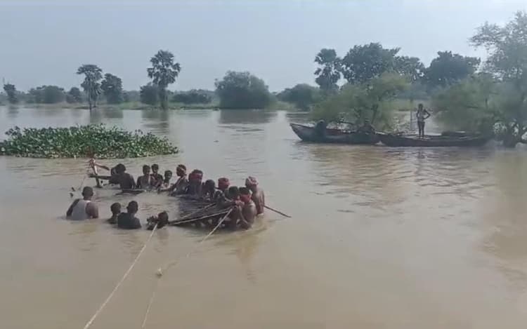Bihar Flood भागलपुर के नाथनगर में शुक्रवार को बड़ा नाव हादसा हो गया. यहां अचानक आई बाढ़ के बाद लोग जल्दबाजी में अपने घरों को छोड़कर सुरक्षित स्थानों की ओर नाव से जाने लगे. इसी दौरान अजमेरीपुर बैरिया में पांच लोगों और बकरियों से भरी एक छोटी नाव जमुनिया नदी की तेज धार में बह गई. नाव पर सवार लोग किसी तरह अपनी जान बचाकर बाहर निकल आए, लेकिन नाव में सवार चार बकरियों की मौत हो गई.