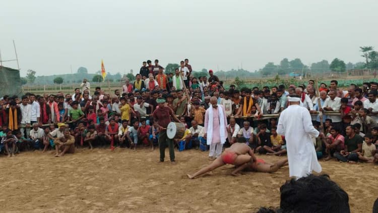 खरीक उस्मानपुर सूर्य मंदिर परिसर के मैदान में छठ पूजा पर चल रहे तीन दिवसीय कुश्ती प्रतियोगिता के दूसरे दिन पहलवानों ने पहलवानी का जलवा दिखाया. दूसरे दिन प्रतियोगिता का उद्घाटन महागठबंधन समर्थित वीआईपी प्रत्याशी अर्पणा कुमारी, प्रखंड प्रमुख शंकर प्रसाद यादव उर्फ दल्लू यादव, छठ पूजा मेला कमेटी अध्यक्ष ने संयुक्त रूप से फीता काट कर किया. दंगल देखने के लिए आयोजन स्थल पर लोगों की भीड़ उमड़ पड़ी. महिला पहलवान में घोघा (भागलपुर) के नीलम पहलवान ने दिल्ली की वैशाली पहलवान को शानदार चित कर खूब वाहवाही लूटी. मिरजाफरी के मो शमशाद ने बेगूसराय के विनोद, खगड़िया के रौशन ने इलाहाबाद के राहुल, बेगूसराय के चांद ने खगड़िया के अजीत, मेरठ के समीर ने आगरा के अमन, खगड़िया के चर्चित राजदेव ने आगरा के पंकज पहलवान को पटकनी देकर खूब ताली बटोरी. फीरोजाबाद के शाहरुख, आगरा के सोनू, समस्तीपुर के इमरान, नौशाद, कहनूर, खगड़िया अजीत, विजय लालगंज के मनखुश समेत बिहार के विभिन्न जिलों सहित यूपी, हरियाणा, पंजाब, राजस्थान समेत विभिन्न राज्यों के पहलवानों का बेहतर प्रदर्शन रहा. दूसरे दिन 50 से अधिक जोड़े पहलवानों ने दांव-पेंच अजमाए. मेला कमेटी ने बताया कि इस दंगल प्रतियोगिता का गुरुवार को फाइनल मुकाबला होगा. प्रतियोगिता के ओवर ऑल के विजेता और उप विजेता पहलवानों को मेला कमेटी की ओर से शील्ड और नकद पुरस्कार दिया जायेगा. कुश्ती प्रतियोगिता में गोरखपुर के मनोज ने बनारस के सागर को पछाड़ दिया कहलगांव. प्रखंड के रामजानीपुर पंचायत बभनगामा में छठ पूजा पर दो दिवसीय कुश्ती प्रतियोगिता हुई. प्रतियोगिता में बिहार, झारखंड, उत्तर प्रदेश सहित अन्य राज्यों के पहलवानों ने भाग लिया. प्रतियोगिता के दूसरे दिन दर्जनों पहलवानों ने अपने दमखम का प्रदर्शन किया. सबसे आकर्षक मुकाबला गोरखपुर और बनारस के पहलवान के बीच हुआ, जिनकी कुश्ती पहले दिन बराबरी पर समाप्त हुई थी. दूसरे दिन बुधवार को एक बार फिर से दोनों पहलवान अखाड़े में उतरे, जिसमें मनोज पहलवान ने सागर पहलवान को पराजित किया. प्रतियोगिता को देखने के लिए काफी संख्या में दर्शक उपस्थित थे.