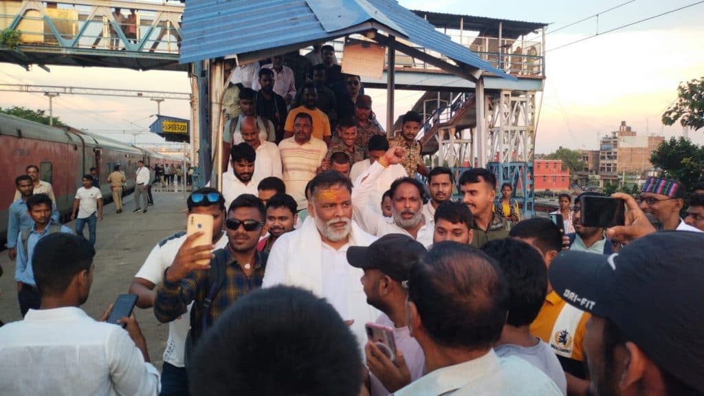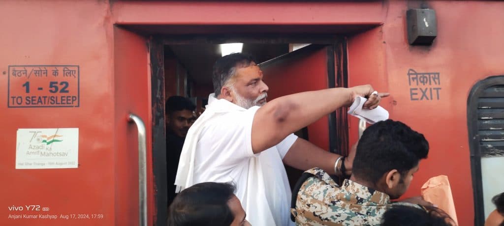 नवगछिया स्टेशन पर राजधानी एक्सप्रेस में सवार हुए पप्पू यादव