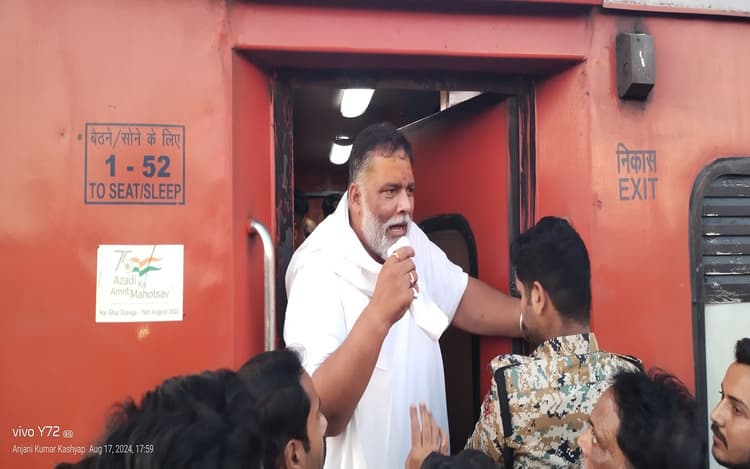 दरअसल, पूर्णिया के निर्दलीय सांसद राजेश रंजन उर्फ पप्पू यादव शनिवार को भागलपुर के नवगछिया स्टेशन पर पहुंचे जहां से राजधानी ट्रेन में वो सवार हुए. नवगछिया स्टेशन पर कार्यकर्ताओं ने उनका गर्मजोशी स्वागत किया. यहां राजधानी एक्सप्रेस के नवगछिया स्टेशन पहुंचने के बाद पप्पू यादव प्लेटफॉर्म पर पहुंचे थे. हड़बड़ाहट में ट्रेन की बोगी में वो सवार हुए. एक वीडियो सामने आया है जिसमें पप्पू यादव ट्रेन की बोगी में सवार होते हैं और राजधानी एक्सप्रेस खुल जाती है. लेकिन अचानक पप्पू यादव के कुछ समर्थक ट्रेन के साथ ही प्लेटफॉर्म पर दौड़ते आगे बढ़ते हैं.