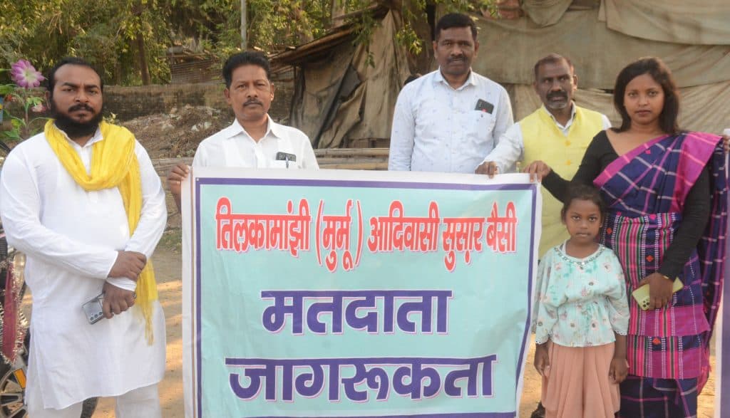 तिलकामांझी आदिवासी सुसार वैसी ने पारंपरिक परिधान में किया नृत्य