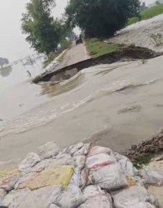 तटबंध की सुरक्षा को लेकर युद्ध स्तर पर बाढ़ संघर्षात्मक कार्य जारी