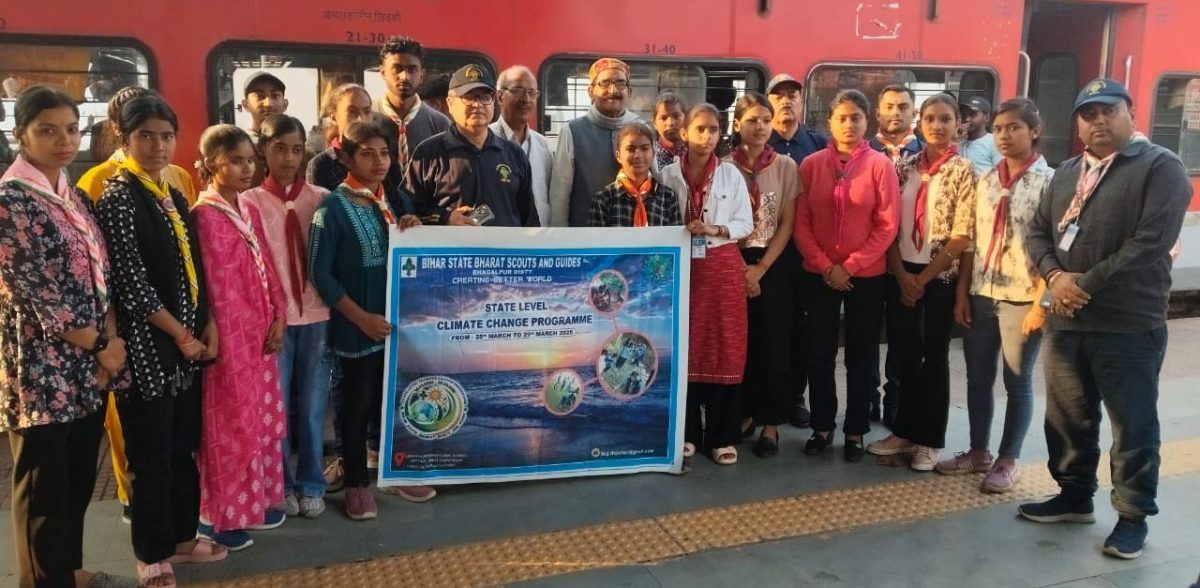 पश्चिम चंपारण के बेतिया में 25 से 29 मार्च तक होने वाले जलवायु परिवर्तन कार्यक्रम में शामिल होने भारत स्काउट और गाइड की 16 सदस्यीय टीम सोमवार को भागलपुर स्टेशन से रवाना हुई.