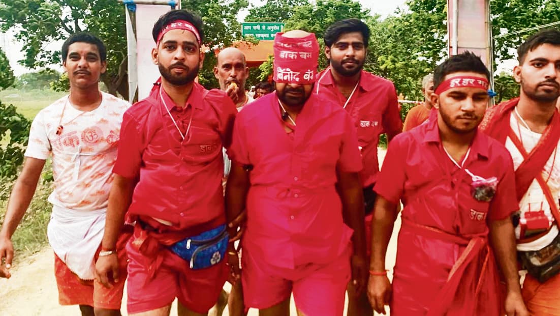 आंखों पर पट्टी बांधकर बाबाधाम जा रहे कांवरिये