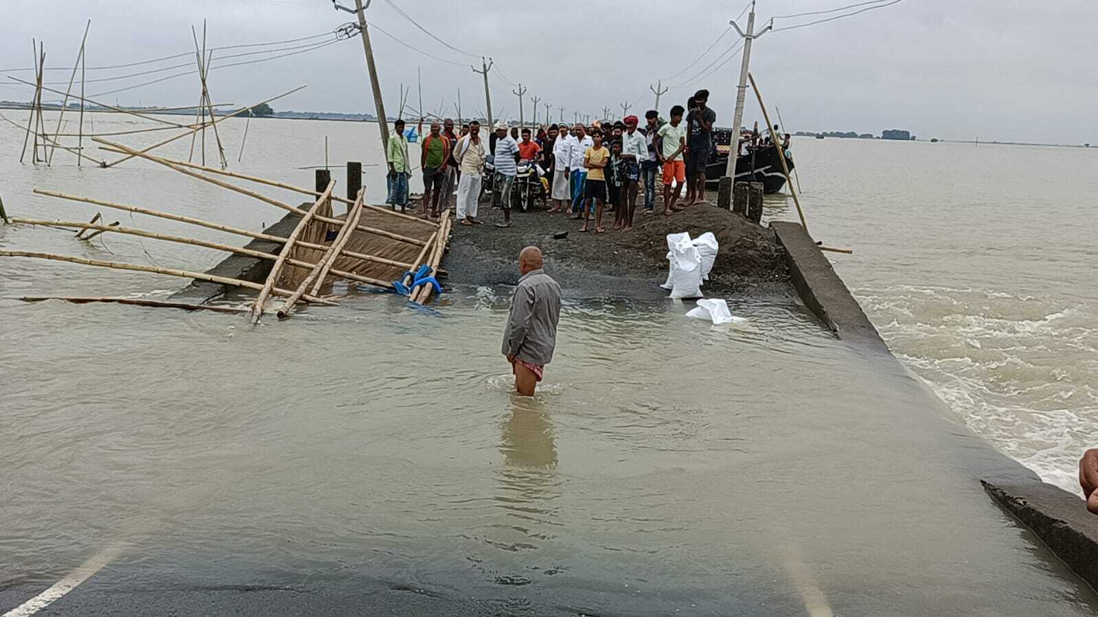 विभाग के कार्यपालक अभियंता अरविंद कुमार गुप्ता ने तत्काल ग्रामीणों को इस होकर गुजरने से रोकने के लिए टूटे पुल के दोनों छोर पर बैरिकेडिंग करवाई व पुलिस ने वहां चौकीदारों सहित दो सशस्त्र जवानों की ड्यूटी लगा दी है. मुखिया लक्ष्मण यादव, पिंटू यादव व अंबिका मंडल ने अंचल प्रशासन की ओर से सड़क को पार करने के लिए दो नौका की व्यवस्था करवायी है. कार्यपालक अभियंता ने बताया कि जलस्तर बढ़ जाने व सड़क पर पानी का अत्यधिक दबाव हो जाने के कारण पुल टूट गया. अब पानी कम होने पर पुल निर्माण की प्रक्रिया शुरू होगी.आरसीडी की सड़क पर ग्रामीण कार्य विभाग ने बनाया था पुल