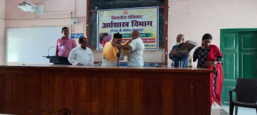 रामाशीष सिंह ने अर्थशास्त्र को परिभाषित करते हुए बताया कि प्रामाणिकता से अर्थ का अर्जन करना ही अर्थशास्त्र है. उन्होंने कहा कि उपभोक्ता की चिंता करना ही अर्थशास्त्र का प्राथमिक कार्य है. कार्यक्रम की अध्यक्षता टीएनबी कॉलेज के प्राचार्य प्रो सच्चिदानंद पाण्डेय, विषय प्रवेश प्रो संजय कुमार झा व संचालन डॉ सुमन कुमार ने किया. कार्यक्रम में विशेष रूप से प्रज्ञा प्रवाह चिति के प्रांतीय सचिव प्रो ब्रजभूषण तिवारी, जिला संयोजक राजीव शुक्लजी, विवि के एनएसएस को-ऑर्डिनेटर डॉ राहुल कुमार, मैथिली विभाग के डॉ अमिताभ चक्रवर्ती, राजनीति विज्ञान विभाग के मनोज कुमार झा, रसायन शास्त्र विभाग के डॉ राजीव कुमार सिंह सहित विभिन्न विभागों के वरिष्ठ प्राध्यापक उपस्थित थे. भागलपुर के विभाग प्रचारक सुरेंद्र कुमार तथा नगर प्रचारक ऋषभ की उपस्थिति थी. 200 से अधिक विद्यार्थियों ने आज के इस ज्ञान से परिपूर्ण संभाषण का लाभ प्राप्त किया. धन्यवाद ज्ञापन अर्थशास्त्र विभाग की अध्यापिका रितु कुमारी ने किया.