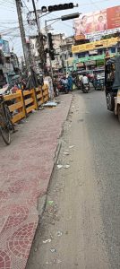 लोहिया पुल के सौंदर्यीकरण की प्लानिंग का एक हिस्सा फुटपाथ पर बिछायी जा रही चेकर टाइल्स का काम है. यह काम करीब डेढ़ महीने से चल रहा है. विडंबना यह है कि एक तरफ से टाइल्स चेकर लगाया जा रहा है, तो दूसरी ओर यह टूट भी रहा है.