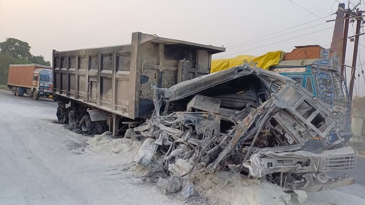 बिहपुर झंडापुर थाना क्षेत्र एनएच-31 हीरा ईंट भट्टा के समीप रविवार देर रात ट्रक और हाइवा की आमने-सामने की टक्कर हो गयी. टक्कर इतनी भयावह थी कि दोनों गाड़ियों में तुरंत आग लग गयी और देखते ही देखते दोनों वाहन जल कर राख हो गये. हादसे में हाइवा के चालक की जलकर मौके पर ही मौत हो गयी. पुलिस ने मृतक की पहचान बांका जिला बैसी थाना क्षेत्र के गजीयाडीह के सुखदेव यादव के पुत्र सुभाष यादव के रूप में की है. आग लगने से वह गाड़ी से बाहर नहीं निकल सका. सूचना मिलते ही झंडापुर ओपी की पुलिस मौके पर पहुंची और दमकल की टीम को बुलाया. दो घंटे की मशक्कत के बाद आग पर काबू पाया जा सका. आग बुझाने के बाद वाहन में फंसे चालक के शव को बाहर निकाला गया और पोस्टमार्टम के लिए अनुमंडल अस्पताल नवगछिया भेज दिया गया. पुलिस ने शव का पोस्टमार्टम करवा कर अंतिम संस्कार के लिए परिजनों को सौंप दिया. हाइवा में गिट्टी लोड था और वह पाकुड़ से खगड़िया जा रही था, जबकि ट्रक में सीमेंट मटेरियल लोड था और वह खगड़िया से पूर्णिया जा रहा था. दोनों वाहन विपरीत दिशा से आ रहे थे और हीरा ईंट भट्टा के पास आमने-सामने टकरा गये. हादसे से एनएच-31 पर आवागमन पूरी तरह बाधित हो गया. दोनों तरफ वाहनों की लंबी कतार लग गयी. दो घंटे बाद आग बुझने पर सड़क पर आवागमन फिर से शुरू हो पाया. लगातार हो रही सड़क दुघर्टना को लेकर कांग्रेस ओबीसी महासभा प्रदेश के महासचिव पंकज कुमार सिंह ने कहा आये दिन कटिहार से खगड़िया के बीच बराबर सड़क दुर्घटना होते रहती है, इसके लिए सरकार कहीं ना कहीं दोषी है. जबकि यह फोर लाइन के लिए स्वीकृत हो चुकी है. बजट भी तैयार हो चुका है, फिर इसको बनाने में देरी करने का कारण क्या है. सड़क दुर्घटना के लिए सरकार कहीं न कहीं इसके लिए दोषी है. इस घटना के बाद स्थानीय लोगों में दहशत है. लोगों का कहना है कि इस मार्ग पर भारी वाहनों की तेज रफ्तार और लापरवाही से आये दिन हादसे होते रहते हैं. उन्होंने प्रशासन से सड़क सुरक्षा के लिए ठोस कदम उठाने की मांग की है.