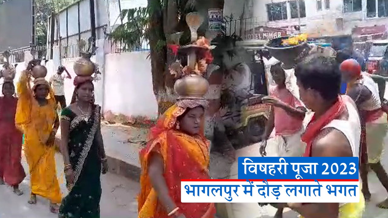 vishahari puja 2023: बिहार के भागलपुर में बिषहरी पूजा की चहल-पहल तेज हो गयी है. विषहरी स्थानों से देवी मनसा के भगत हाथों में धूप की थाल लिए सड़क पर झूमते नाचते जा रहे हैं. महिलाएं बारी कलश को लेकर भगत के साथ चल रही हैं. गंगाजल भरकर सभी वापस आए.