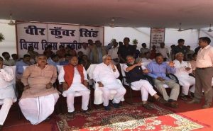 भोजपुर : बिहार के भोजपुर जिले में वीर कुंवर सिंह के 160वें विजयोत्सव के अवसर पर जगदीशपुर के किला समेत वीर कुंवर सिंह ग्राम, दुलौर,जगदीशपुर में सोमवार से तीन दिनों तकचलनेवाले सांस्कृतिक कार्यक्रमों की आज विधिवत शुरुआतहो गयी. सोमवार सुबह शिवपुर घाट से भव्य शोभा यात्रा निकाली गयी.शिवपुरघाटसे शोभा यात्रा जगदीशपुर किले तक गयी, जहां मुख्यमंत्री नीतीश कुमार ने उसका स्वागत किया.सीएमनीतीश कुमार ने जगदीशपुर में वीर कुंवर सिंह की प्रतिमा पर माल्यार्पण किया. उन्होंने वीर कुंवर सिंह संग्रहालय का भी उद्घाटन किया. फिर किला मैदान जगदीशपुर में झंडोत्तोलन तथा वीर कुंवर सिंह ग्राम में दीप प्रज्ज्वलन कर कार्यक्रम का आगाज किया.