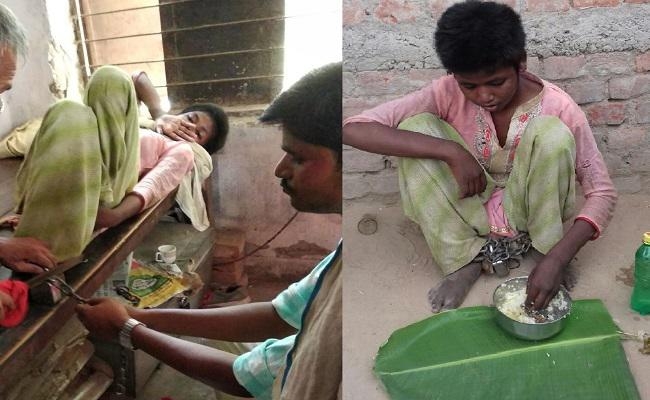 जानकारी के अनुसार गुरुवार की अहले सुबह घर में किसी को न पाकर पैरों में बेड़ी और जंजीर समेत किसी प्रकार पीड़िता वहां से फरार हो गयी. इस दौरान गांव के लोगों को आपबीती सुनाये जाने पर लोगों ने उसे खाना खिलाया और मामले की सूचना पुलिस को दी. घटनास्थल पर पहुंचकर पुलिस ने पीड़ित किशोरी को अपने कब्जे में लिया. पुलिस ने इस दौरान पीड़िता की शिनाख्त पर उसके पैरों में जंजीर व बेड़ी लगाने वाले टिपुरा कॉलोनी निवासी स्व बांसरोपन शर्मा के पुत्र रामभजन शर्मा को हिरासत में ले लिया. पुलिस ने किशोरी को थाने में लाकर उसके पैरों में बंधे जंजीर व बेड़ी को कटवाया तब जाकर पीड़िता ने आजादी की सांस ली.