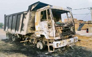 जब मिट्टी लाद कर डंपर जा रहा था, तभी सोया हुआ युवक उसकी चपेट में आ गया. घटना के बाद डंपर चालक वाहन को घटनास्थल पर ही छोड़कर भाग निकला. इसके बाद आक्रोशित लोगों ने डंपर को आग के हवाले कर दिया. आक्रोशित लोगों ने सड़क जाम कर मुआवजे की मांग की. सूचना पाकर जाम हटाने गयी पुलिस पर लोगों ने पथराव शुरू कर दिया.