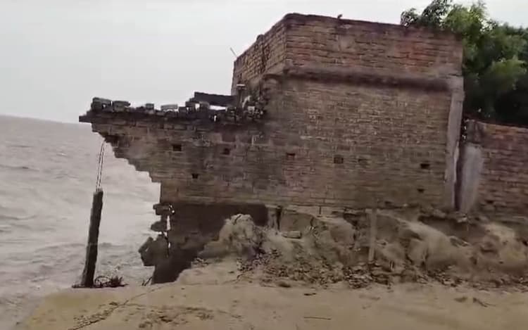 बिहार के भोजपुर जिले में गंगा के रौद्र रूप ने तबाही मचानी शुरू कर दी है, जहां गंगा के जलस्तर में तेजी से हो रहे वृद्धि का असर जिले के बड़हरा और शाहपुर प्रखंड में काफी ज्यादा दिखाई दे रहा है. सोमवार की सुबह गंगा की तेज लहरों के बीच कटाव से शाहपुर जवईनिया गांव के काली मंदिर और एक पक्का मकान सहित कई पेड़ पौधे देखते ही देखते गंगा की धारा में विलीन हो गई. इस दौरान वहां उपस्थित ग्रामीणों ने खौफनाक मंजर को अपने मोबाइल कैमरे में कैद कर लिया और उसे सोशल मीडिया पर वायरल कर दिया.