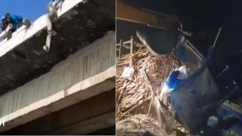 बगहा में बड़ा हादसा, गन्ना लदा ट्रैक्टर पुल की रेलिंग तोड़ते हुए 40 फीट नीचे मसान नदी में गिरा