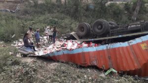 बुरी तरह क्षतिग्रस्त हो गया ट्रक