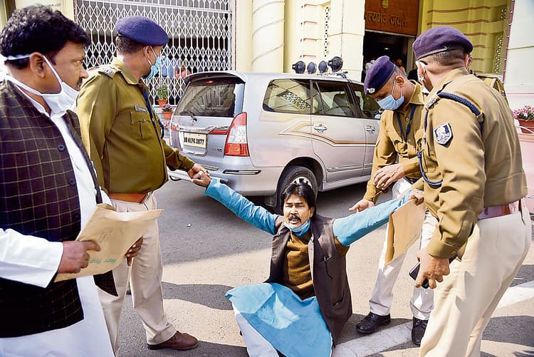 विपक्ष ने बुधवार को सदन शुरू होने से पहले ही सरकार के खिलाफ विरोध प्रदर्शन किया था. माले के नेता सदन महबूब आलम, बीरेंद्र प्रसाद गुप्ता, महानंद सिंह, सुदामा प्रसाद, रामबली सिंह यादव, मनोज मंजिल और संदीप सौरव ने सदन के बाहर पोस्टर- बैनर के साथ प्रदर्शन कर कानून व्यवस्था का मुद्दा उठाया.