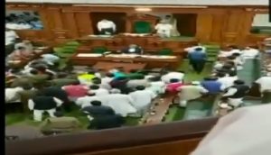 सोमवार को उन्हें समय मिला तो उन्होंने दो मिनट का समय मांगा . इस बीच हंगामा इतना बढ़ा की नौबद हाथापाई तक आ गयी. हंगामे के बीच वेल की कुर्सी भी पलट दी गयी
