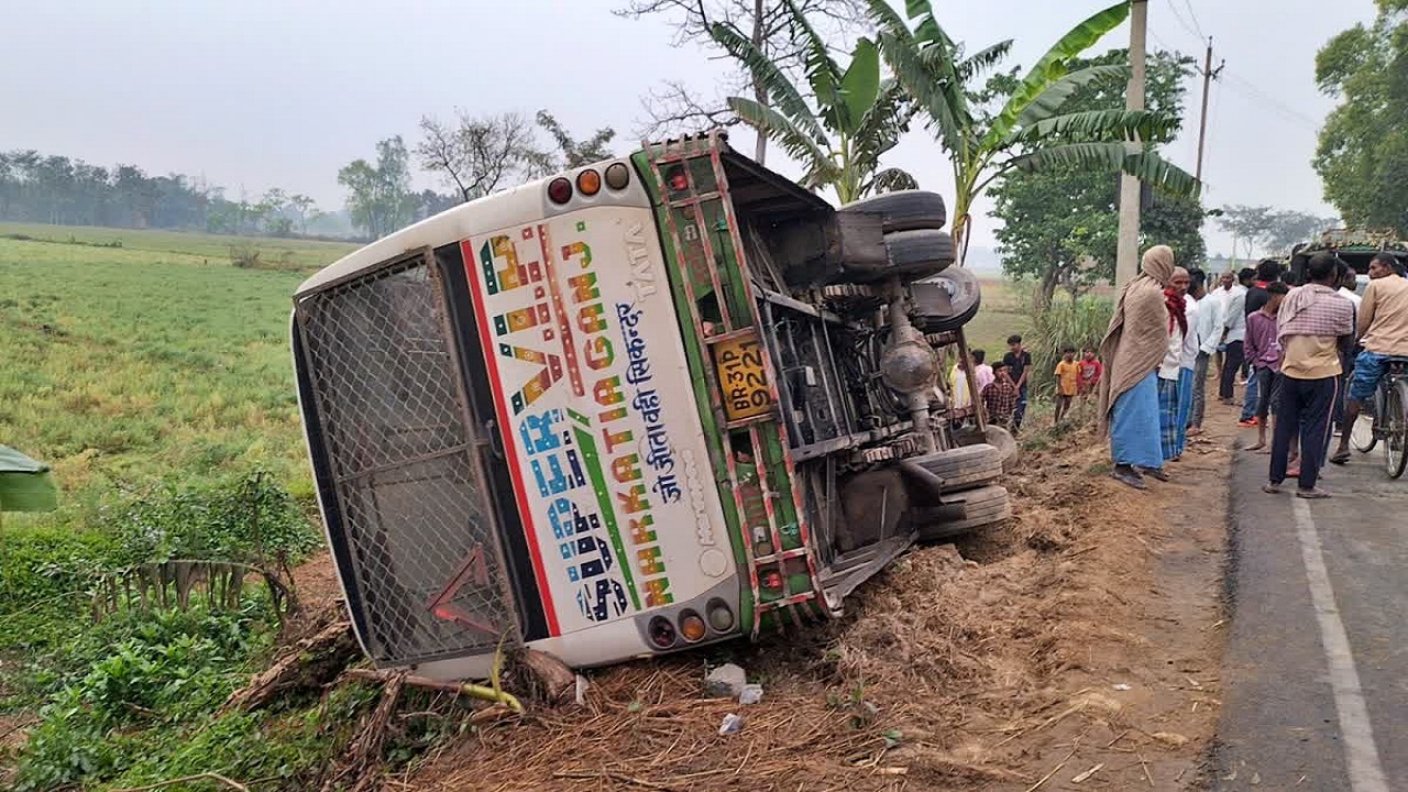 बिहार के बेतिया में बारातियों से भरी बस पलट गई. घटना बेतिया स्थित गौहाना नरकटियागंज के मुख्य मार्ग की है. यहां बारातियों से भरी बस पलट गई. इसके बाद स्थानीय लोगों ने तत्परता दिखाते हुए घायलों को इलाज के लिए अनुमंडल अस्पताल में भर्ती कराया. यहां घायलों का प्राथमिक उपचार लगातार जारी है. वहीं सूचना मिलने के बाद पुलिस तुरंत मौके पर पहुंच गई. आपको बता दें कि पुलिस मामले की जांच में जुटी है. जानकारी के अनुसार शुक्रवार सुबह की यह घटना है. इस हादसे में कई लोग जख्मी है.