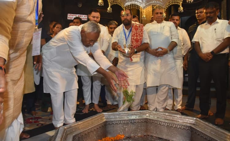 सीएम नीतीश कुमार ने भगवान श्रीविष्णु चरण का जल, दूध व दही से अभिषेक करने के बाद तुलसी-अर्चना का अनुष्ठान पुजारी प्रवीण पाठक के निर्देशन में संपन्न किया. सीएम व डिप्टी सीएम के विष्णुपद मंदिर पहुंचने पर श्री विष्णुपद प्रबंधकारिणी समिति के अध्यक्ष शंभू लाल विट्ठल, सदस्य मणि लाल बारिक, महेश लाल गुप्त व समिति से जुड़े अन्य सदस्यों ने उनका स्वागत किया. पूजा-अर्चना के बाद समिति के पदाधिकारियों ने मुख्यमंत्री नीतीश कुमार उपमुख्यमंत्री तेजस्वी यादव, वित्त मंत्री विजय चौधरी को अंग वस्त्र देकर सम्मानित किया. इस मौके पर बिहार सरकार के सहकारिता मंत्री डॉ सुरेंद्र प्रसाद यादव, विधान पार्षद डॉ कुमुद वर्मा, पूर्व विधायक अभय कुशवाहा सहित जदयू के कई अन्य नेता भी मौजूद थे.