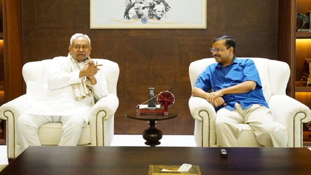 बिहार के मुख्यमंत्री नीतीश कुमार ने रविवार को दिल्ली के मुख्यमंत्री अरविंद केजरीवाल से मुलाकात की. विपक्षी एकता पर बातचीत के लिए दिल्ली पहुंचे नीतीश कुमार अरविंद केजरीवाल से मिलकर भाजपा के खिलाफ एकजुटता पर बात करेंगे.