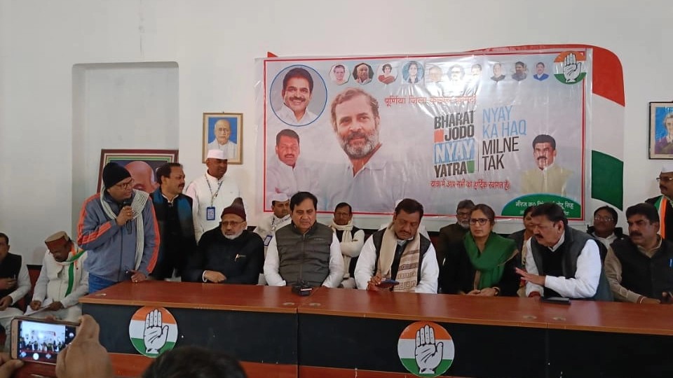 बिहार में सियासी उठा पठक जारी है. दावा किया जा रहा है कि नीतीश कुमार रविवार को इस्तीफा दे देंगे और फिर बीजेपी के साथ गठबंधन कर सरकार बनाएंगे. ऐसे में सभी दल अपनी-अपनी तैयारियों में जुटे हैं. कांग्रेस भी पटना से करीब 300 किलोमीटर दूर पूर्णिया में अहम बैठक कर रही है. शनिवार दोपहर एक बजे ही बैठक शुरू होनी थी, लेकिन विधायकों के देर से पहुंचने की वजह से बैठक कुछ देर के लिए टाल दी गई. कुछ विधायक रास्ते में हैं और कुछ बैठक स्थल पर पहुंच चुके हैं. विधायकों के पहुंचने के बाद बैठक शुरू होगी. बैठक को लेकर कांग्रेस प्रदेश अध्यक्ष ने बताया कि राहुल गांधी की भारत जोड़ो न्याय यात्रा को लेकर यह बैठक बुलाई गई है.