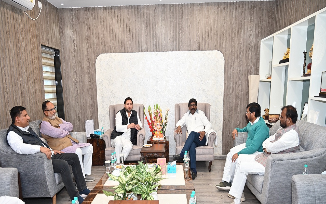 बिहार के उपमुख्यमंत्री तेजस्वी यादव ने झारखंड के मुख्यमंत्री हेमंत सोरेन से उनके आवास पर औपचारिक मुलाकात की. इस मौके पर उनके बीच विकास से जुड़े कई विषयों पर विचार-विमर्श हुआ. पूर्व केंद्रीय मंत्री जयप्रकाश नारायण यादव, बिहार विधानसभा के सदस्य अब्दुल बारी सिद्दीकी, बिहार के पूर्व मंत्री श्याम रजक, झारखंड के पूर्व मंत्री सुरेश पासवान, पूर्व विधायक संजय प्रसाद यादव इस मौके पर मौजूद थे.