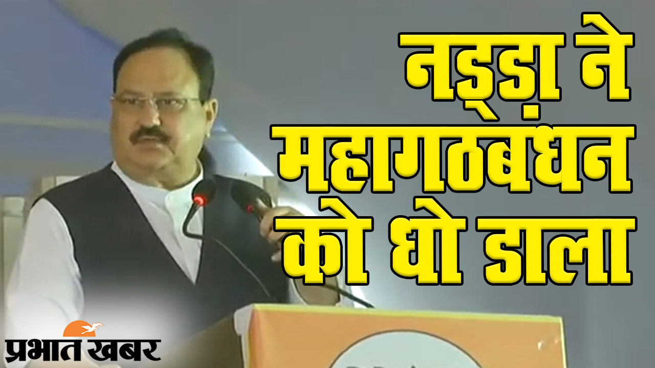 Bihar Chunav 2020: बिहार विधानसभा चुनाव (Bihar Vidhan Sabha Chuanv) के पहले चरण की वोटिंग 28 अक्टूबर को है. इसको लेकर सियासी सरगर्मियां तेज हो चुकी हैं. इसी बीच बीजेपी के राष्ट्रीय अध्यक्ष जेपी नड्डा (JP Nadda) ने बिहार चुनाव (Bihar Chuanv) को लेकर प्रचार किया. इस दौरान उन्होंने महागठबंधन पर जमकर निशाना साधा.