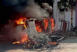Munger News: दुर्गा प्रतिमा विसर्जन के दौरान सोमवार की रात हुई फायरिंग में एक छात्र की मौत के बाद पुलिस और प्रशासन के खिलाफ मुंगेर (Munger) के लोगों में जो ज्वालामुखी गर्म हो रहा था, वह गुरुवार को आक्रोश का लावा बन शहर की सड़कों पर फूट पड़ा. बिहार चुनाव (Bihar chunav 2020) के पहले चरण के मतदान के एक दिन बाद चार घंटे तक शहर में भगदड़ व अफरा-तफरी मची रही और उग्र भीड़ के निशाने पर पुलिस महकमा रहा. आक्रोशित भीड़ ने जहां एसपी कार्यालय (Munger SP office) व एसडीओ आवास में तोड़-फोड़ की, वहीं दूसरी पूरबसराय में जहां दो पुलिस वाहन, एक मोटरसाइकिल, साइकिल व ठेला को आग के हवाले कर दिया. Munger News से जुड़ी हर खबर के लिये बने रहिये prabhatkhabar.com पर.