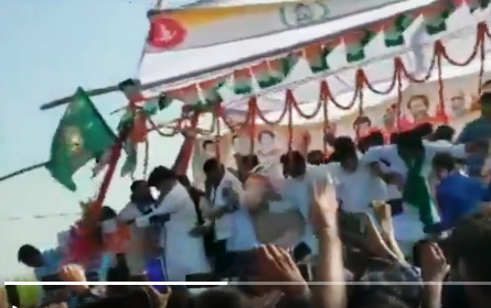 #WATCH Bihar: Stage collapsed during a public rally of Congress party at Bagahi Deoraj in West Champaran, earlier today.