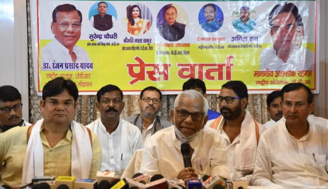 पटना : जनता दल राष्ट्रवादी के राष्ट्रीय अध्यक्ष व पूर्व सांसद डॉ रंजन प्रसाद ने बुधवार को होटल चाणक्या में प्रेस कॉन्फ्रेन्स कर कहा कि उनकी पार्टी बिहार में होनेवाले विधानसभा चुनाव में एमवाइ प्लस समीकरण के साथ 150 सीटों पर चुनाव लड़ेगी.
