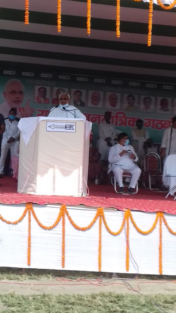 Bihar Chunav 20202 : मुजफ्फरपुर के सकरा मेंं आज सीएम नीतीश कुमार ने रैली चुनावी को संबोधित किया. रैली में मुख्यमंत्री नीतीश कुमार ने कहा कि उनके शासन काल मे बिहार का सड़क, बिजली, स्वास्थ्य, शिक्षा और कृषि के क्षेत्र में चौमुखी विकास हुआ है.