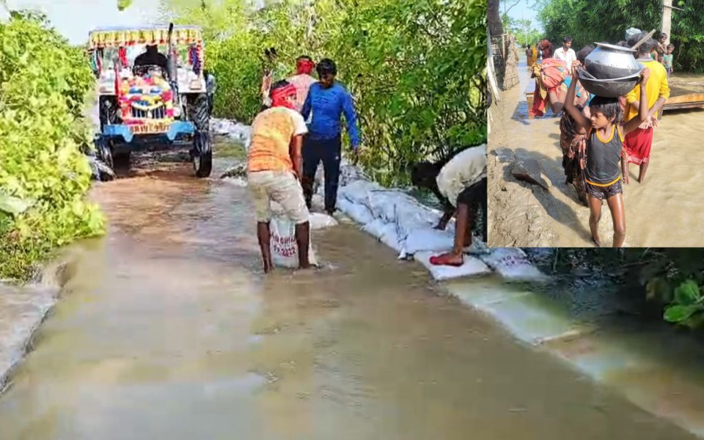 बाढ़ के पानी में डूबा लोगों का घर