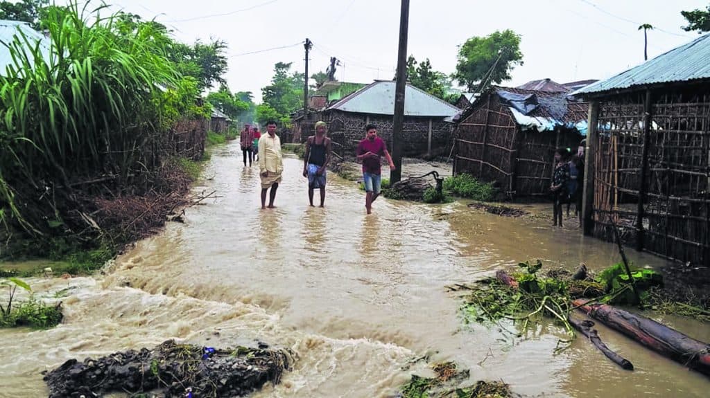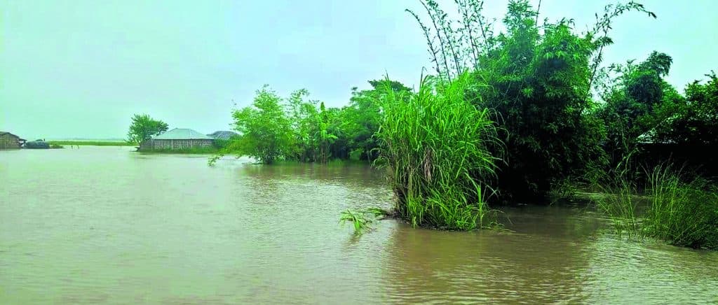 निर्मली में बाढ़ का पानी फैला
