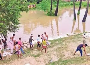 दो जगहों पर टूटा बूढ़ी गंडक का रिंग बांध, एक जगह तेज रिसाव