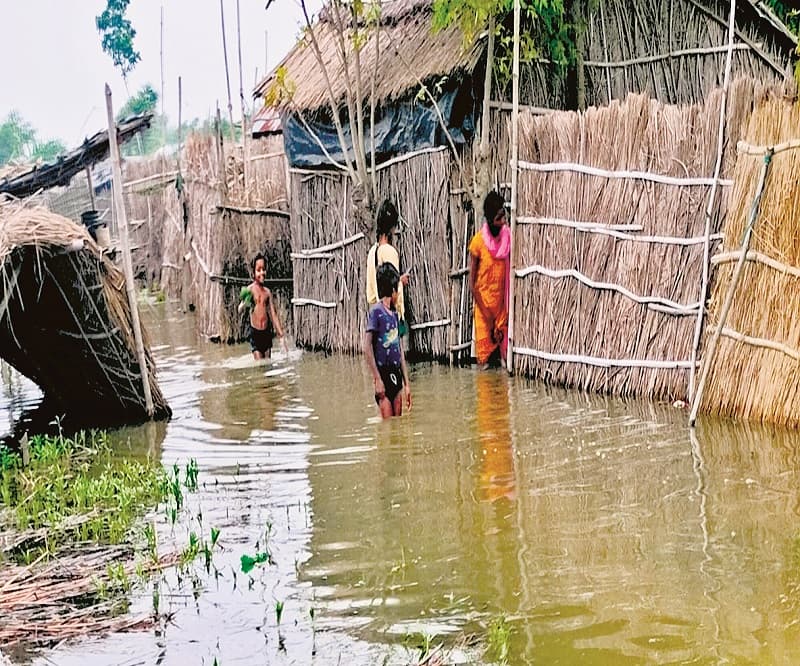 पूर्णिया के रुपौल प्रखंड के गांव बाढ़ की पानी से घिरे