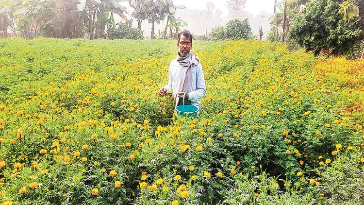 गेंदा फूल की खेती एक नकदी खेती है. इस खेती में खाद की कोई जरूरत नहीं होती है. जैविक खाद के जरिये खेत को तैयार किया जाता है. फिर उसमें गेंदा फूल की खेती किया जाता है. आज लोकनाथ भगत एक एकड़ में गेंदा फूल की खेती कर सलाना लगभग डेढ़ लाख रुपये की आमदनी कर रहे है. उनके पास अपनी जमीन नहीं है, इसलिए वे लीज पर जमीन लेकर गेंदा फूल की खेती कर रहे हैं. उनका कहना है करीब तीस वर्ष पूर्व सबसे पहले वैशाली जिला में गेंदा फूल की खेती इन्होंने ही शुरू की थी. बंगाल से गेंदा फूल का बीज लाया था और अपने गांव मे ही छह कट्ठा जमीन लीज पर लेकर गेंदा फूल की खेती थी. अच्छी आमदनी हुई तो खेती का दायरा बढ़ता गया.