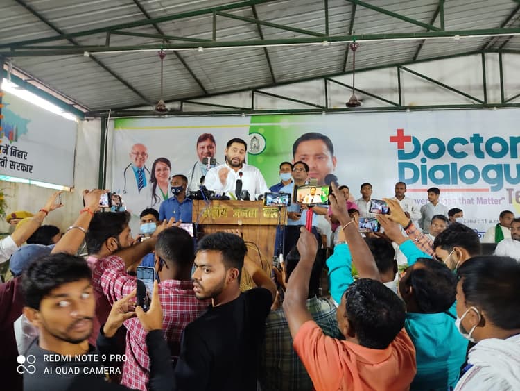 पटना. पूर्व उपमुख्यमंत्री और नेता प्रतिपक्ष तेजस्वी यादव ने कहा कि नीति आयोग की हालिया रिपोर्ट यह बता रही है कि वर्तमान स्थिति में किस तरह बिहार का स्वास्थ्य सेवा बदहाल है. प्रदेश राजद कार्यालय में राजद चिकित्सा प्रकोष्ठ की तरफ से आयोजित ‘डॉक्टर्स डायलॉग विद तेजस्वी’कार्यक्रम को संबोधित करते हुए रविवार को तेजस्वी ने बिहार सरकार पर जमकर हमला बोला.