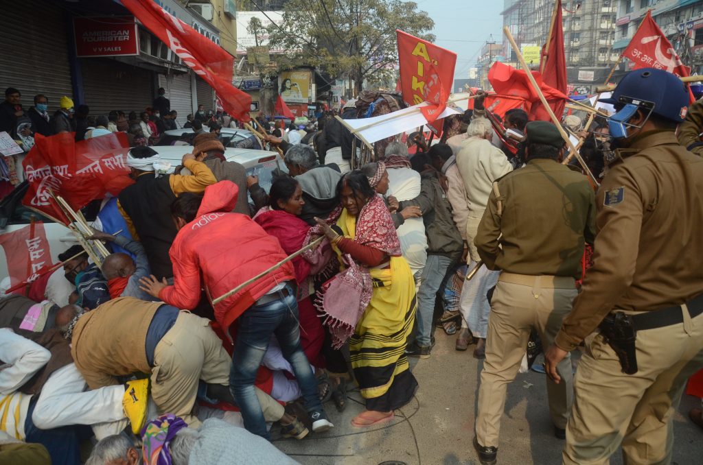 नये कृषि कानून के खिलाफ पटना में मंगलवार को प्रदर्शन कर रहे किसान संगठन से जुड़े लोगों और पुलिस में जमकर भिड़ंत हो गयी. मामला इतना अधिक बढ़ गया कि पुलिस को लाठीचार्ज करना पड़ा. इसमें तीन प्रदर्शनकारियों के सिर फट गये, वहीं कुछ लोग जख्मी हो गये. इसके बाद दोनों पक्षों में जमकर मारपीट व धक्का -मुक्की की गयी. लाठीचार्ज के बाद भगदड़ की स्थिति मच गई. जिसे जिधर रास्ता दिखा उधर दौड़ पड़ा. इस चक्कर में क्या महिलाएं और क्या पुरुष दोनों ही गिरते-भागते और पुलिस को करीब देख गिड़गिड़ाते नजर आए. आगे की स्लाइड्स में देखें तस्वीरें..