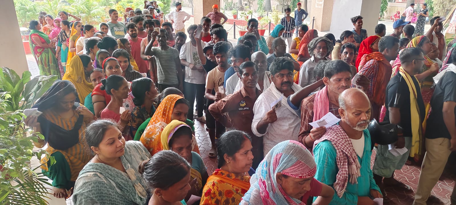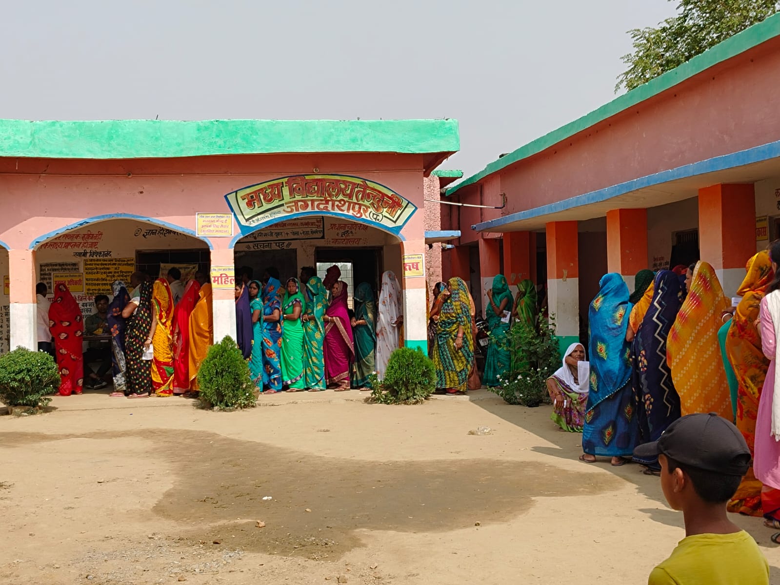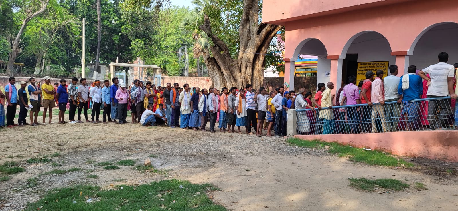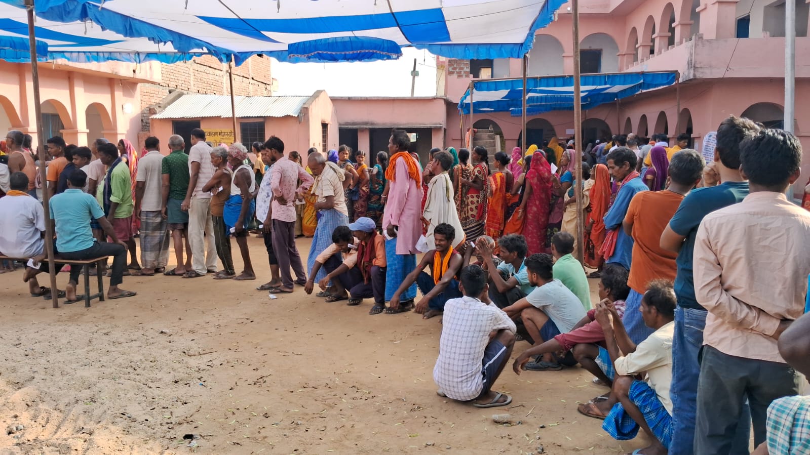 खुले में लगी कतार, मतदाताओं को धूप में खड़े रहने की मजबूरी
