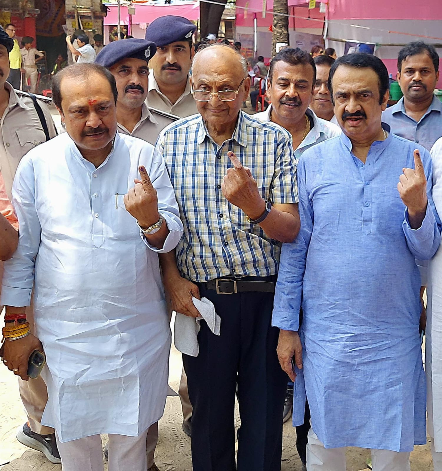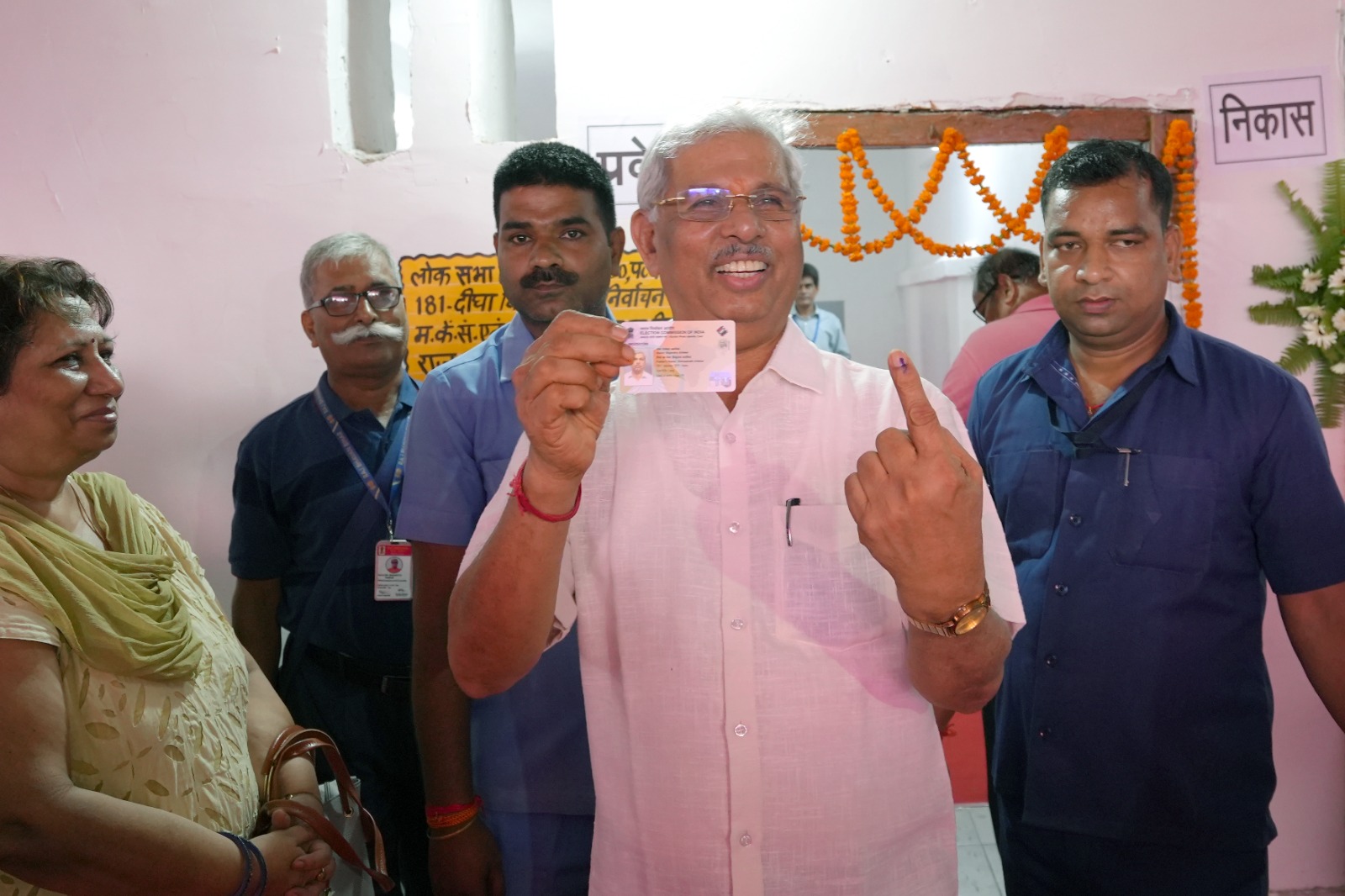 वरिष्ठ भाजपा नेता व पूर्व केंद्रीय मंत्री पद्म भूषण डॉ. सीपी ठाकुर, राज्यसभा सांसद विवेक ठाकुर और दीपक ठाकुर ने पटना साहिब लोकसभा क्षेत्र के डाकबंगला रोड पर मतदान केंद्र बिहार राज्य पुस्तकालय प्राधिकरण पर अपना वोट डाला.