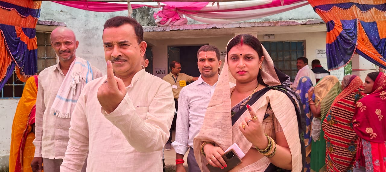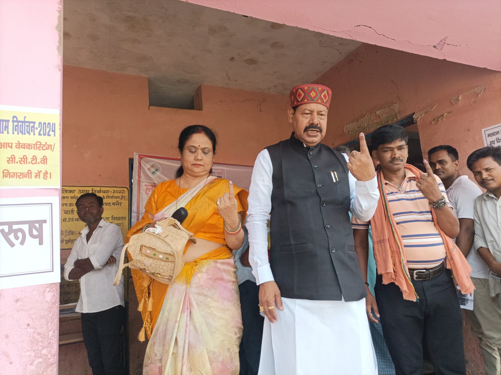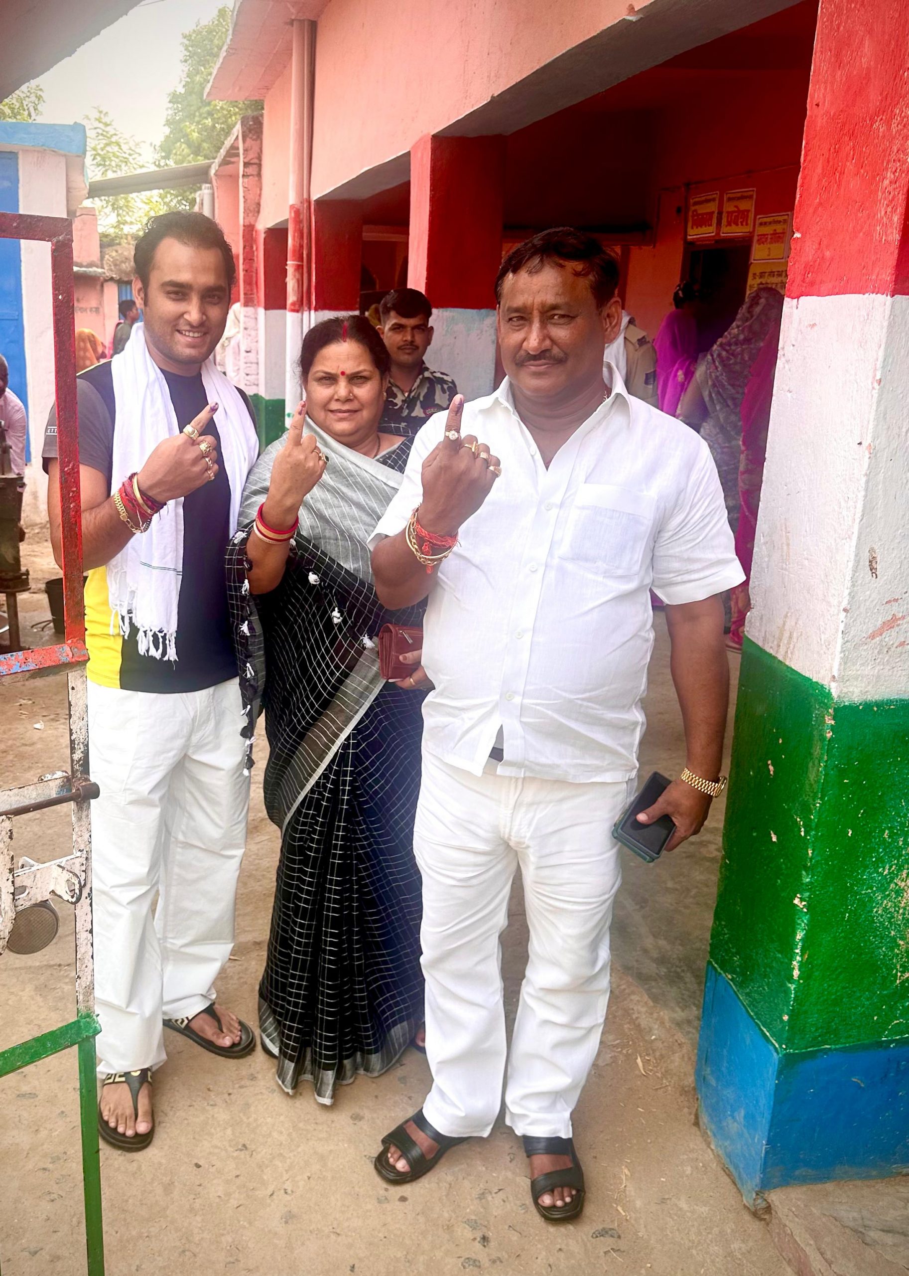 अगिआंव विधानसभा उपचुनाव के लिए भी मतदान हो रहा है. विधानसभा के बूथ संख्या 237 पर संदेश विधानसभा के पूर्व विधायक अरुण कुमार यादव अपनी पत्नी सह वर्तमान संदेश विधायक किरण देवी सहित पुत्र दीपू राणावत के साथ मतदान करने पहुंचे.