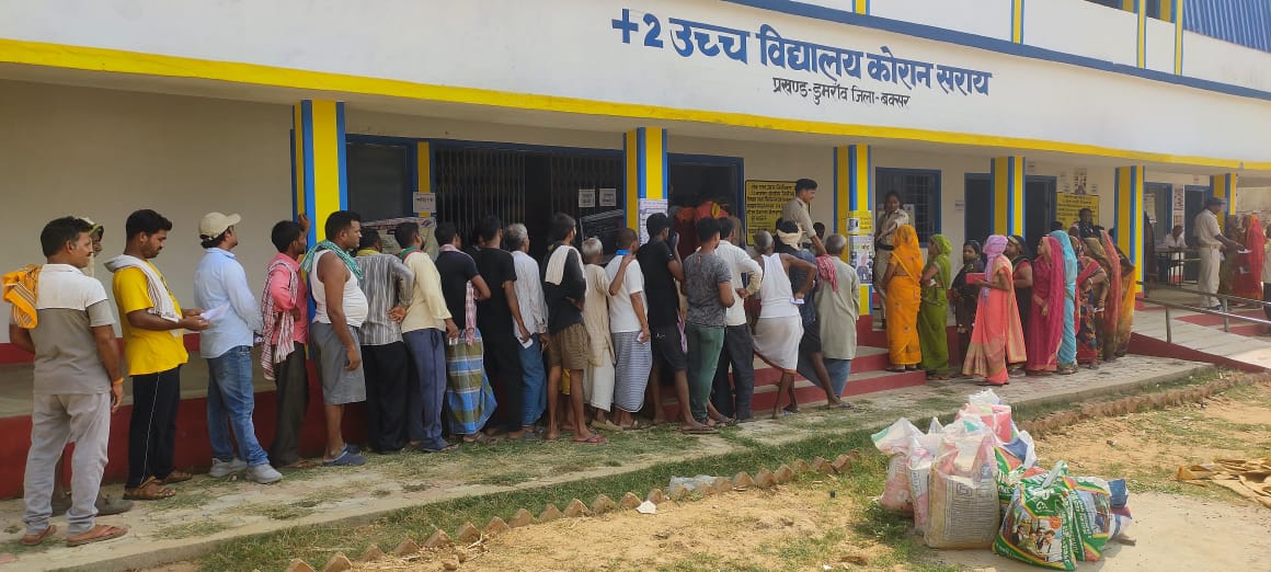 Bihar Lok Sabha Election 2024 Phase 7 Voting : बक्सर लोकसभा संसदीय क्षेत्र के डुमरांव प्रखंड के अंतर्गत आने वाले राजपुर विधानसभा के कोरानसराय बूथ संख्या 173 पर मतदाताओं की लंबी कतार लगी हुई है.
