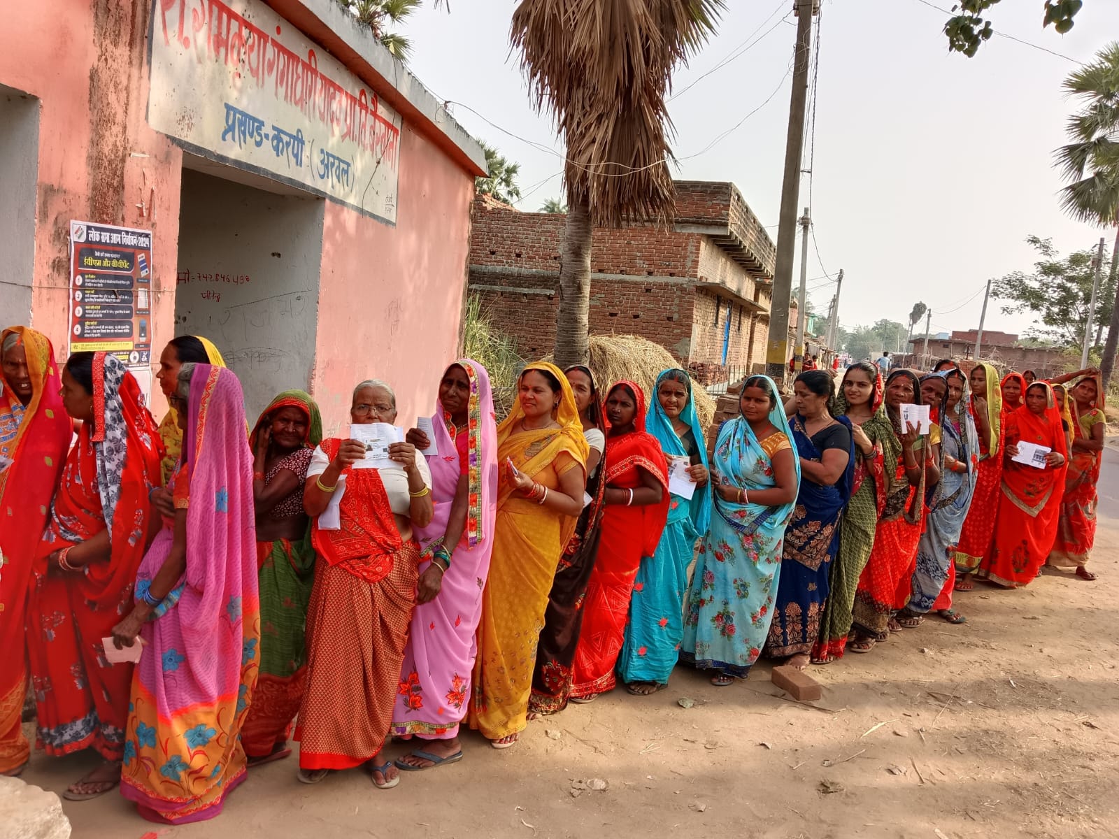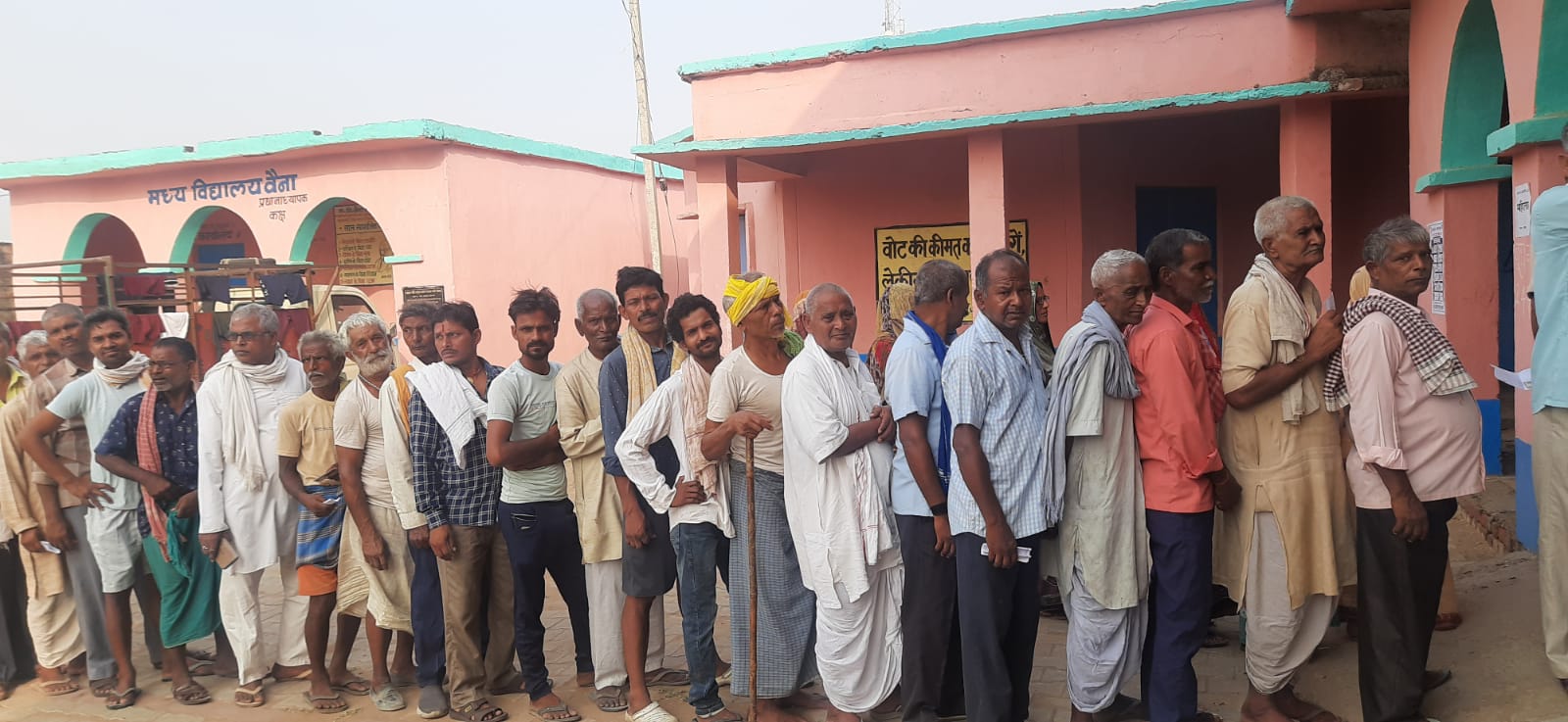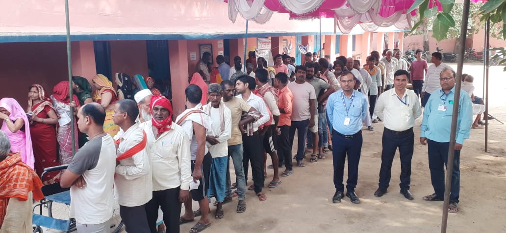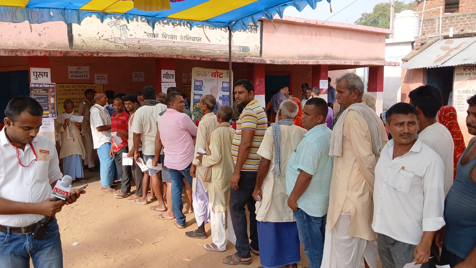 जहानाबाद में मतदाताओं की लंबी लाइन लगी