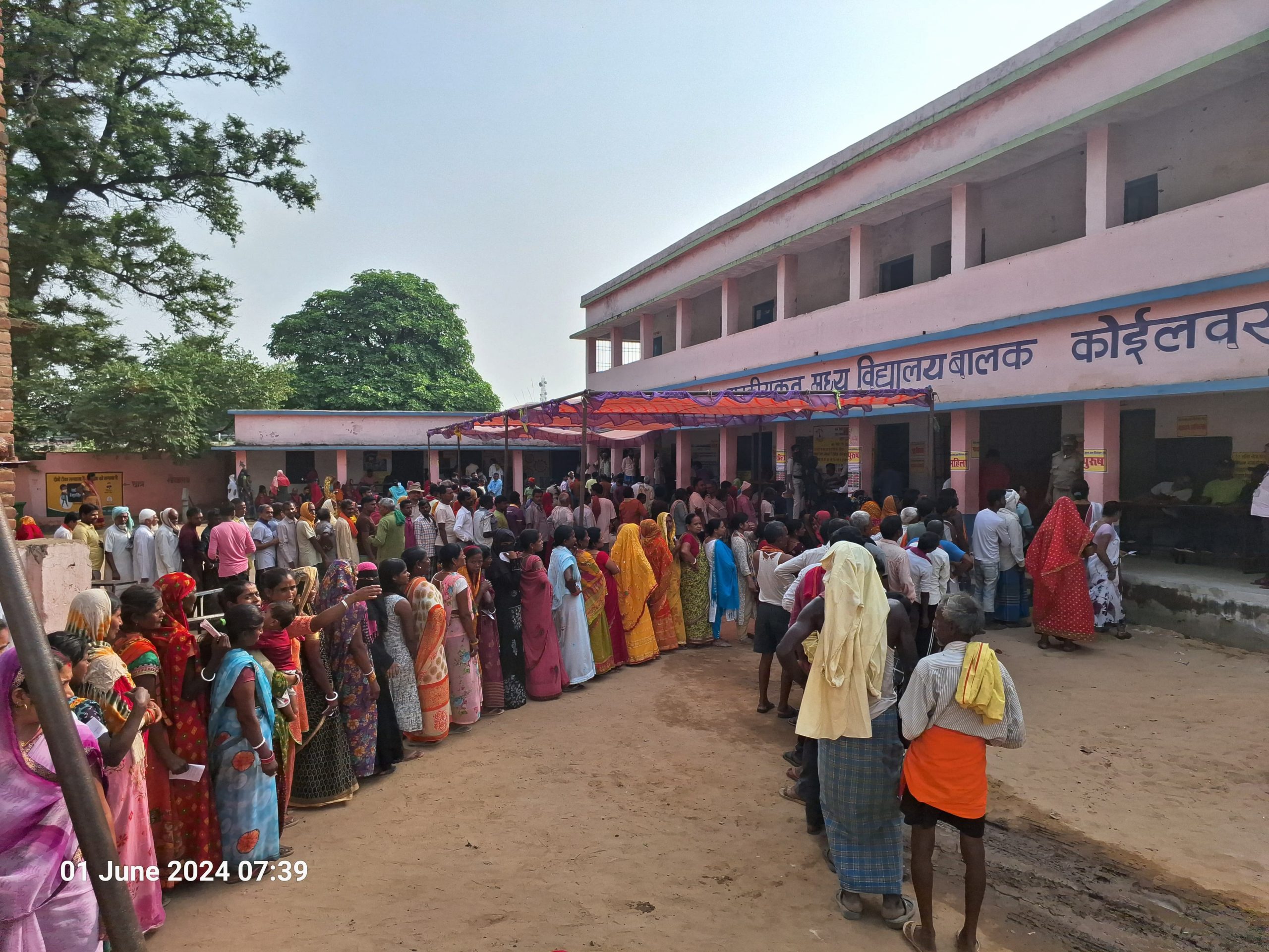 बक्सर लोकसभा के राजपुर प्रखंड के विभिन्न बूथों पर मतदान के लिए सुबह 6:00 से ही वोटरों की कतार बन गई.मतदान करने के लिए लोगों में काफी उत्साह देखा गया. अधिक गर्मी एवं तापमान को देखते हुए लोग सुबह में ही घर से बाहर निकल गए.जिसमें महिलाओं की संख्या काफी अधिक है. उत्क्रमित उच्च विद्यालय मंगराव के बूथ संख्या 209, 210,211 पर सुबह 7:300 बजे तक मतदाताओं की लंबी कतार लगी रही.